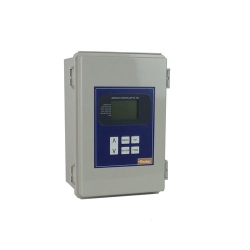 Parker’s DC300 Defrost Controller provides a simple and safe solution for defrosting industrial and commercial evaporators. The DC300 manages a single air unit and does not require a complex and expensive PLC or PC based control system. The Defrost Controller is a powerful yet user friendly device for controlling the sequence of events that occur during system defrost cycles. The Controller may be applied to both industrial and commercial refrigeration systems, and is suitable for use on hot gas, electric, or water defrost applications.